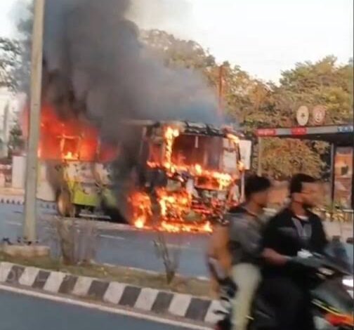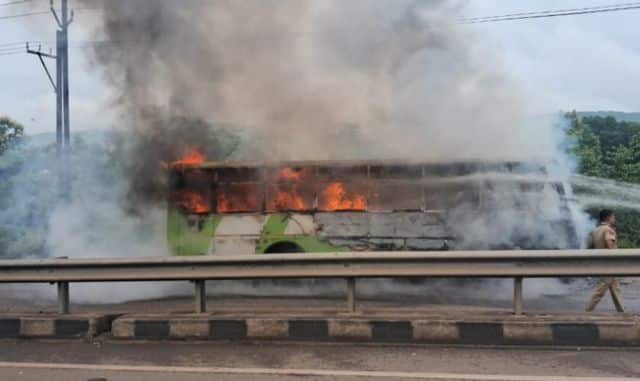 Ama Bus Catches Fire at Kalinga Studio Square, No Injuries