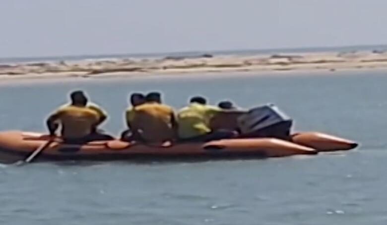 Under the influence of a high tide, the boat lost balance and capsized in the sea. The fire brigade reached the spot and started the rescue.