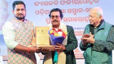 Dr Nrusingha Charan Sarangi Conferred Vyasa Kabi Fakir Mohan Odia Bhasha Samman