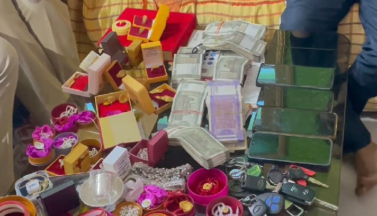 Huge Rs 500 currency notes, gold, silver, and other ornaments were seized during these raids. Land papers and multiple ATM cards and cars were also seized from various places during the raid.