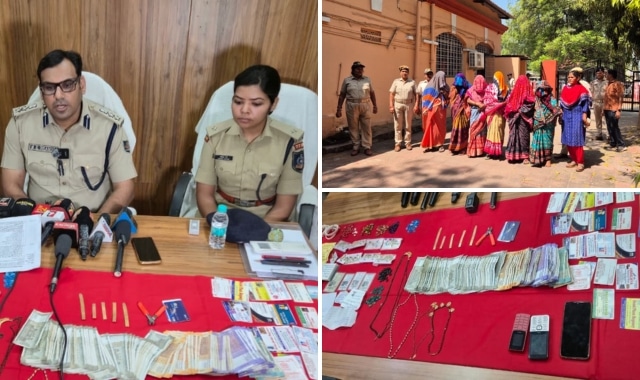 Police arrested six women from different districts, including J. Bhanumati, Deepa Das, Kalyani Das, Priya Das, S. Thara, and Pooja Singh. Officers seized five gold plates weighing 51.75 grams, Rs 62,400 in cash, mobile phones, a hand cutter, fake voter IDs, and large quantities of imitation stones and fancy ornaments.