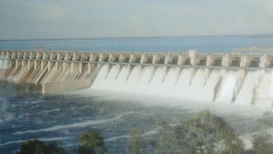 Sluice gates of Hirakud dam opened