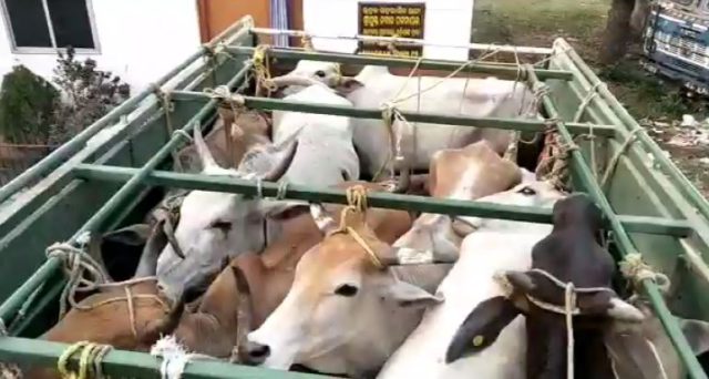 Three Vans Carrying Cows Intercepted in Cuttack, Dozens of Animals Rescued